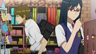 On the other side of town, Tsuruko and Yukiatsu are out shopping. Guess what Yukiatsu trying to buy though... a headband. Heh, this guy is weird. I got a feeling that he's buying this stuff for Menma.